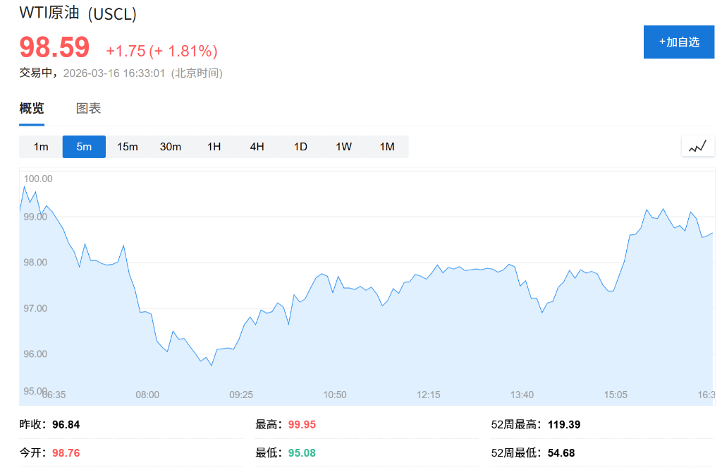阿联酋关键枢纽富查伊拉港周一再遭袭击,导致石油装卸全面暂停,油价应声上涨,WTI原油上涨1.81%至98.59美元/桶。作为阿联酋唯一绕过霍尔木兹海峡的出口通道,该港口在战时具有极高的战略价值。目前港口损失仍在评估中,恢复时间未定。
